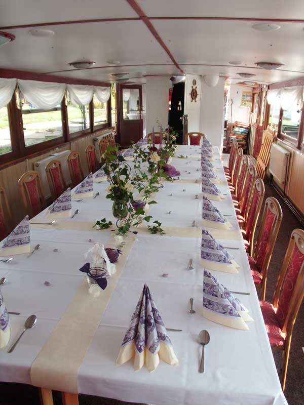 Auch an kalten Tagen ist das Schiff angenehm warm, so dass Sie in gemütlicher Atmosphäre die Seele baumeln lassen können und Ihrem Wunsch nach Ruhe und Beschaulichkeit nachgeben können.